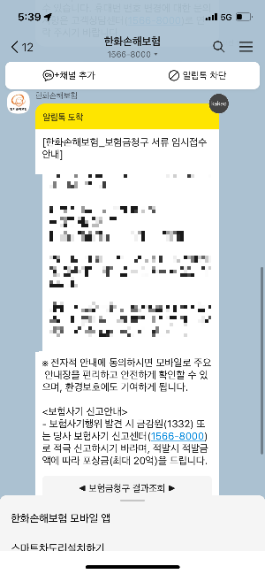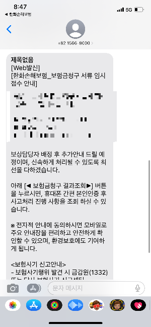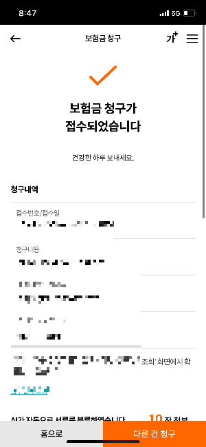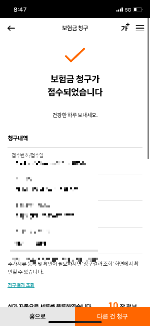3. 보험금 접수가 완료되면 이렇게 보험금 접수 완료 문자가 온다.