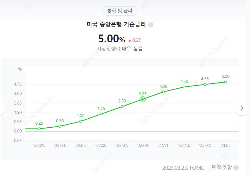 위 사진은 1년 미국 중앙은행 기준금리와 미국채 10년 국채수익률 그래프이다. 최근 1년간 미국 기준금리는 계속해서 상승했다.