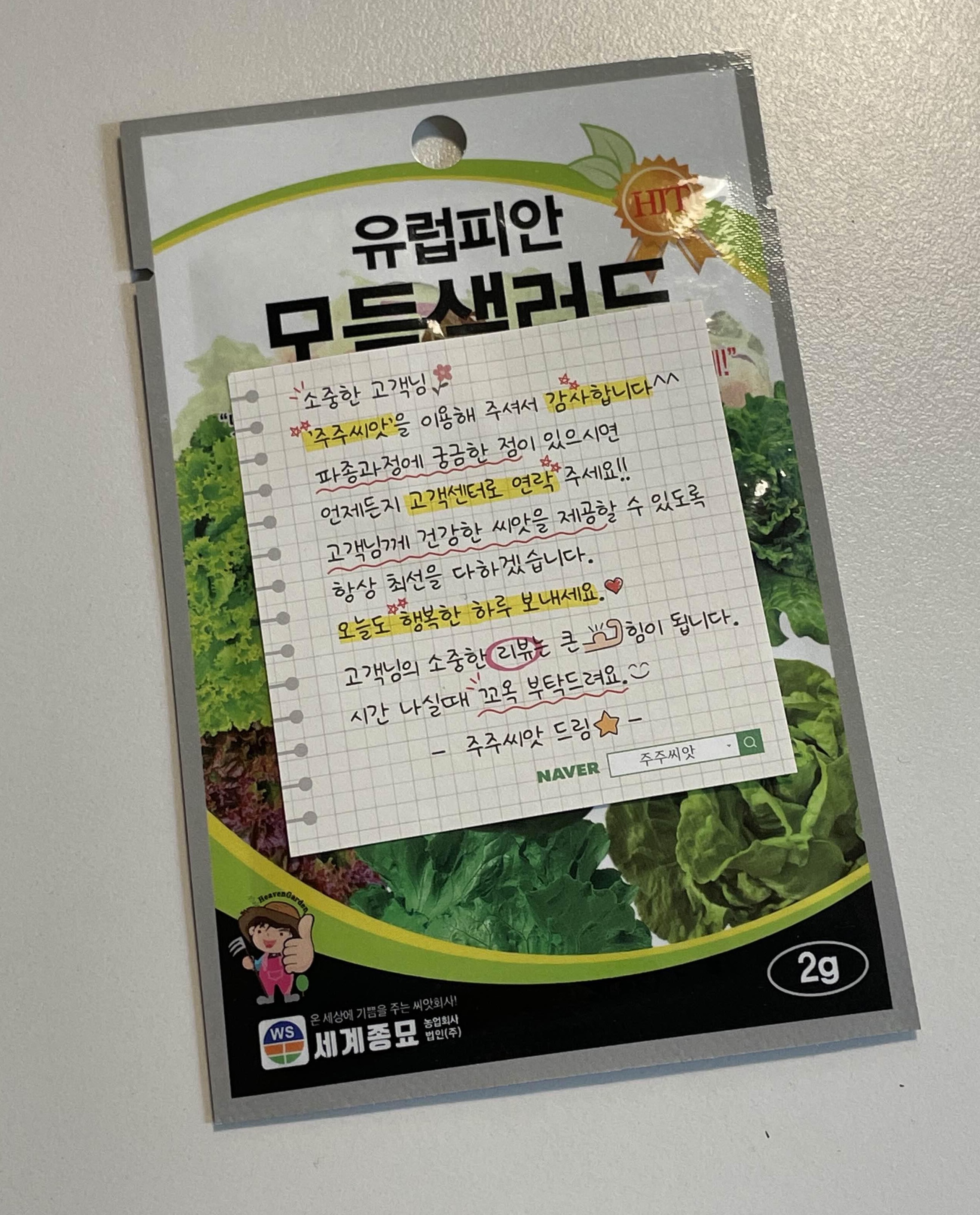 유럽 상추 씨앗으로는 유럽피안 모듬샐러드 라는 것을 샀습니다.