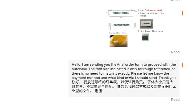 아무래도 한국인과 연락하는 것이 아니라, 중국인과 연락하는 것이기 때문에 내가 원하는 라벨의 사이즈 등을 정확히 하기위해 이 과정은 필수입니다.